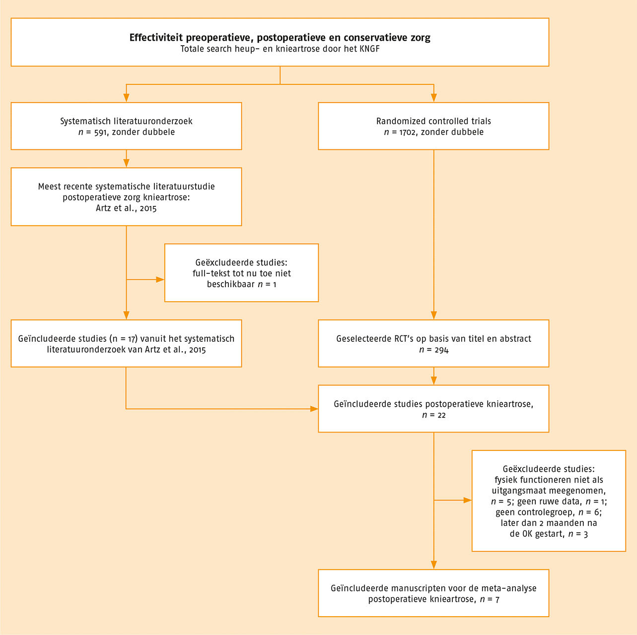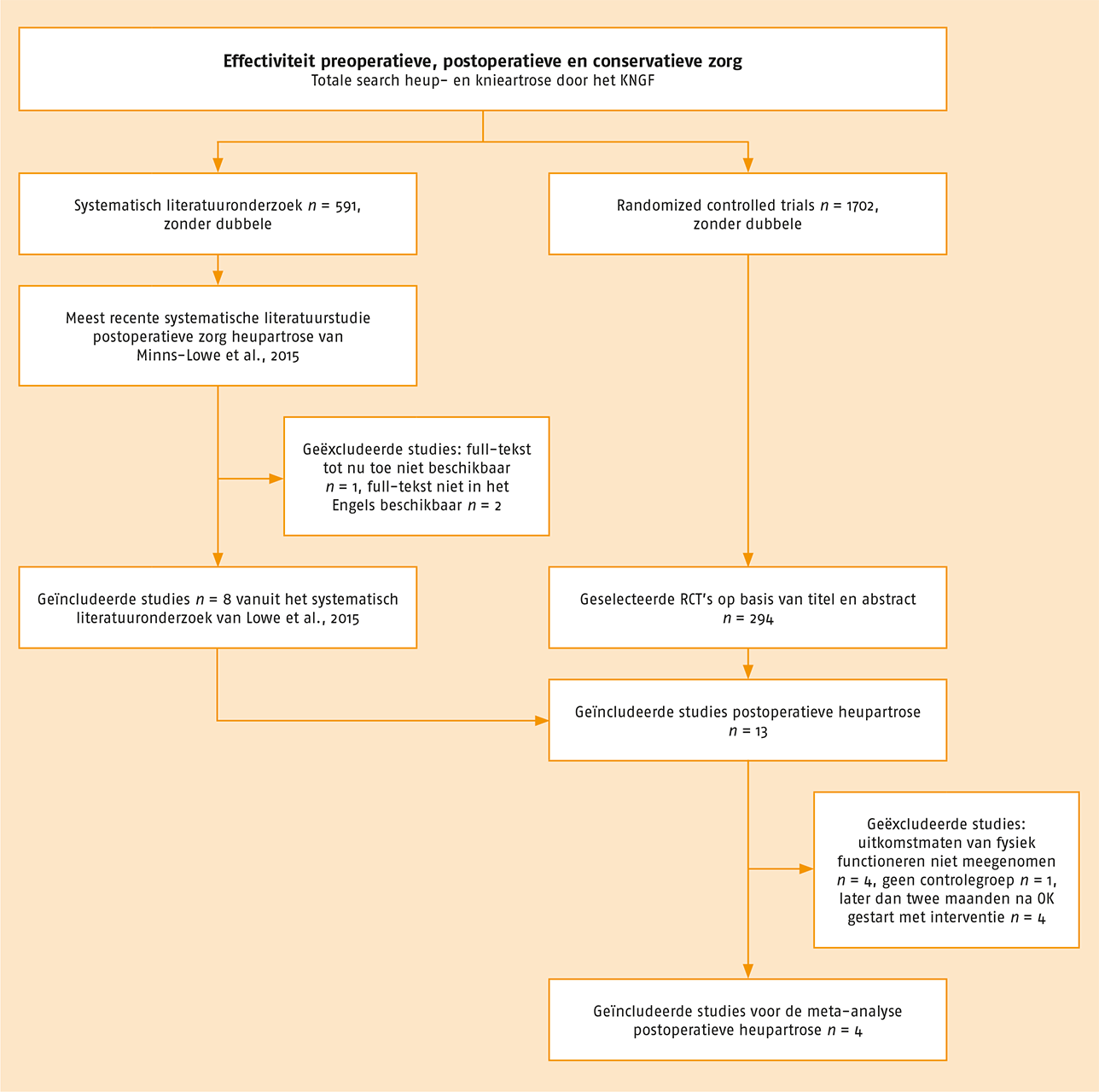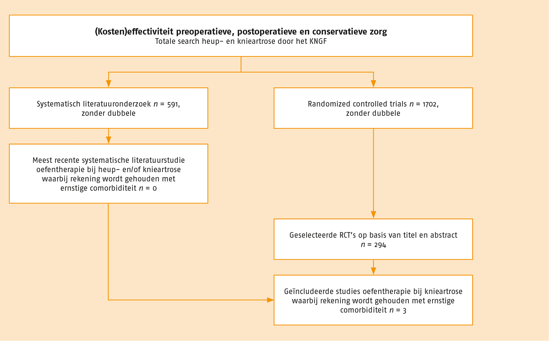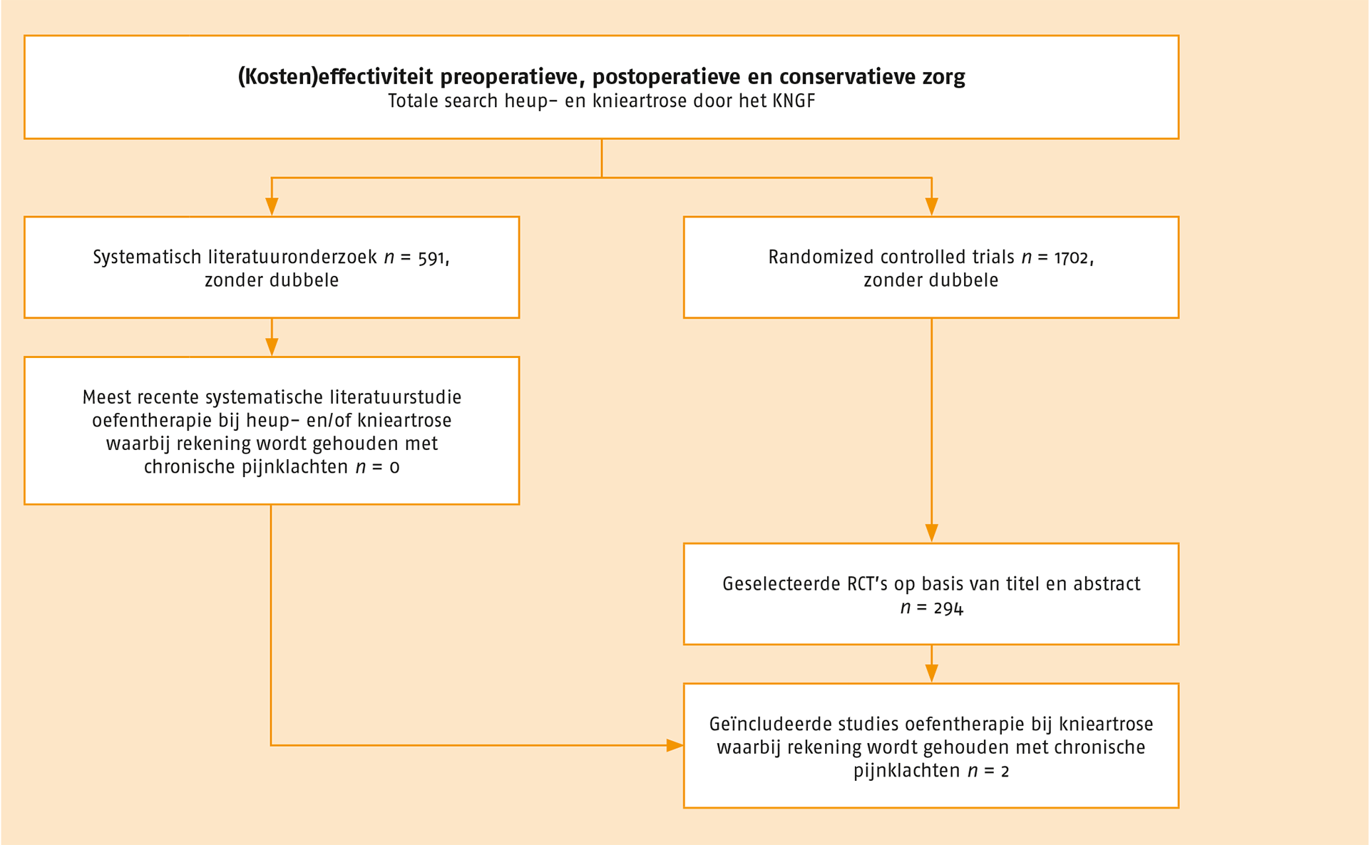 Er is door het KNGF op 14 augustus 2017 een zoekactie uitgevoerd in PubMed, EMBASE, Web of Science, Cochrane Library, CENTRAL, EmCare en CINAHL, naar samenvattingen van de literatuur (i.e. systematische reviews; SR’s) en RCT’s (RCT’s) met betrekking tot de effectiviteit van thermotherapie op fysiek functioneren bij patiënten met heup- en knieartrose.
