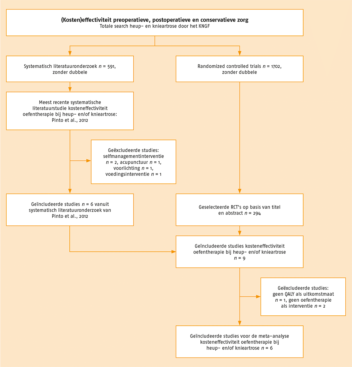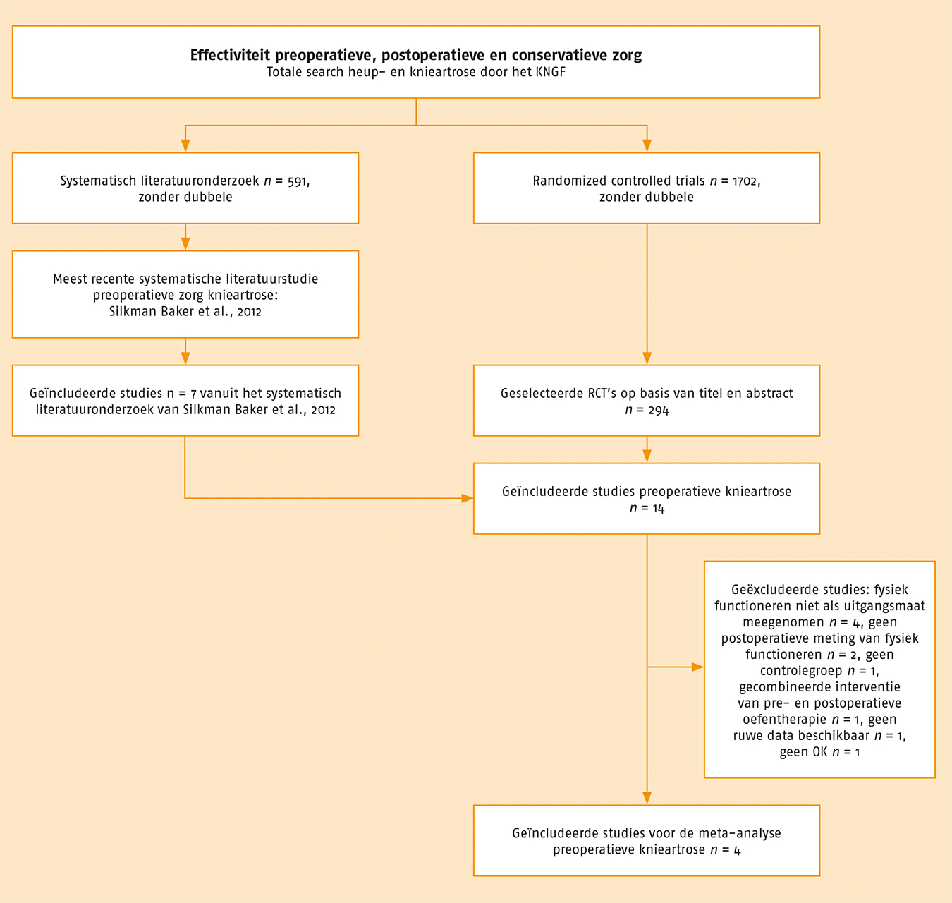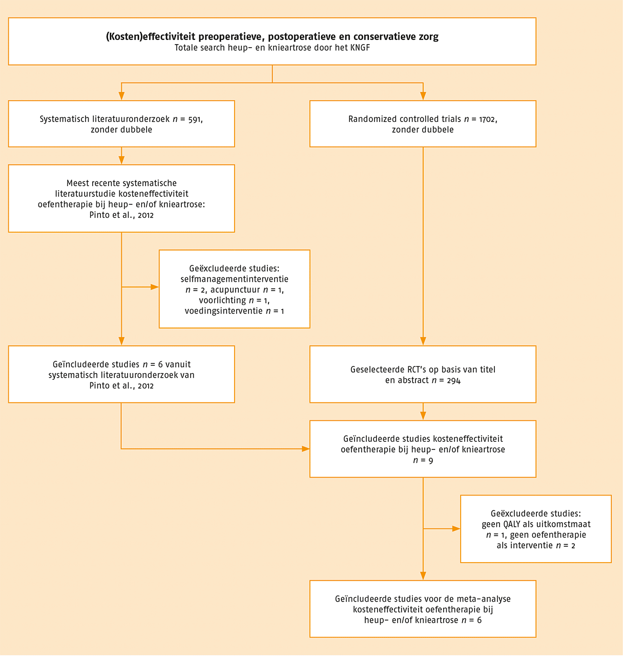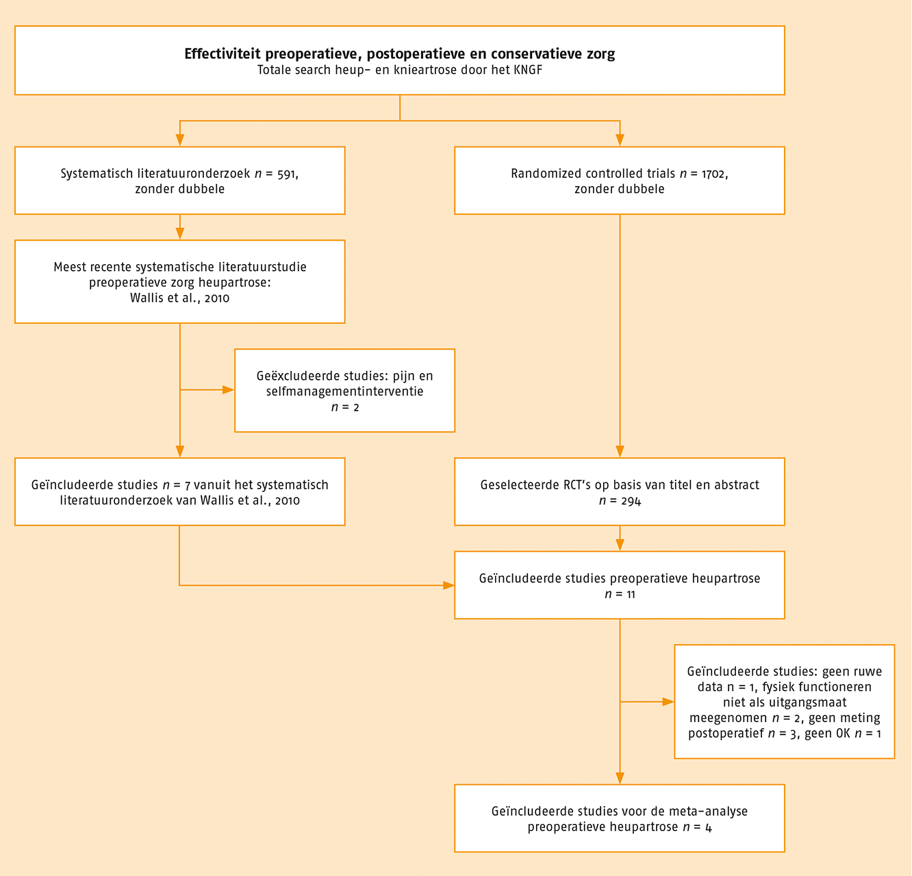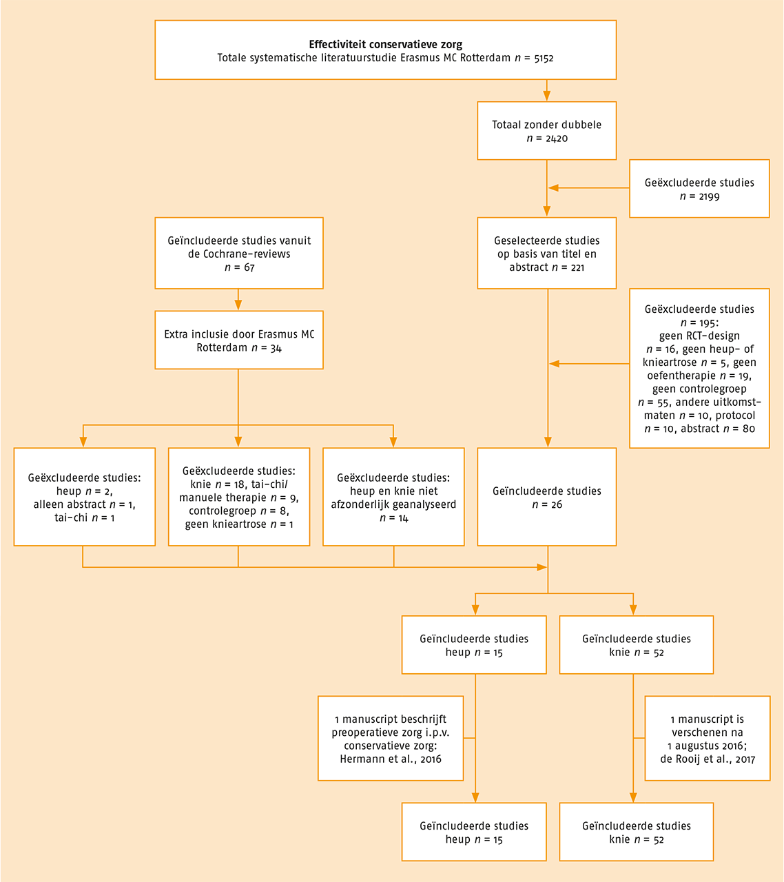 Er is door het KNGF op 14 augustus 2017 een zoekactie uitgevoerd in PubMed, EMBASE, Web of Science, Cochrane Library, CENTRAL, EmCare en CINAHL, naar samenvattingen van de literatuur (i.e. systematische reviews; SR’s) en RCT’s (RCT’s) met betrekking tot de effectiviteit van thermotherapie op fysiek functioneren bij patiënten met heup- en knieartrose.