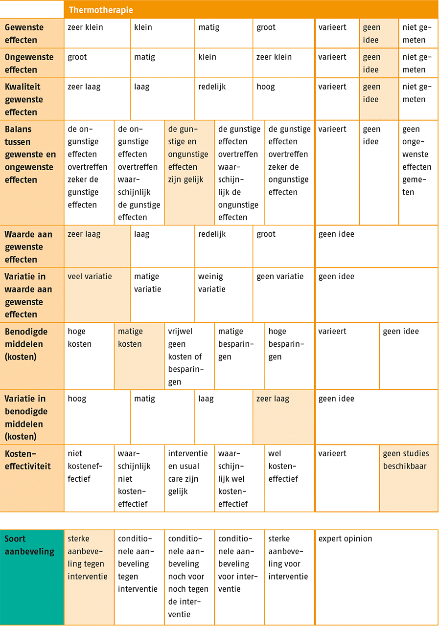 Wordt thermotherapie (warmte- of koudetherapie) (I) vergeleken met geen thermotherapie (C) aanbevolen voor de behandeling van patiënten met heup- en/of knieartrose (P) ter verbetering van fysiek functioneren (O)?
