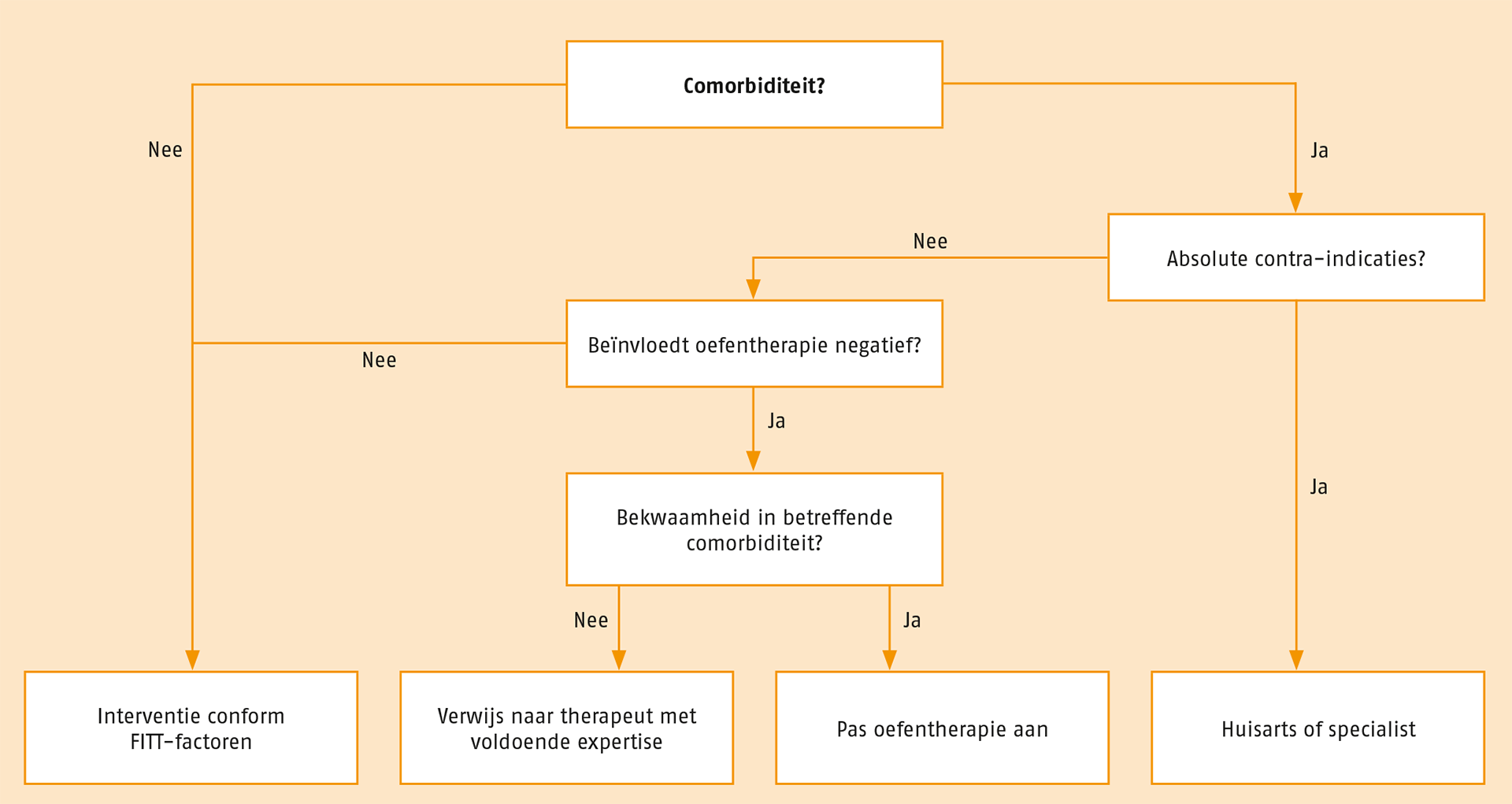 Oefentherapie wordt aanbevolen, gebruikmakend van de FITT-factoren: