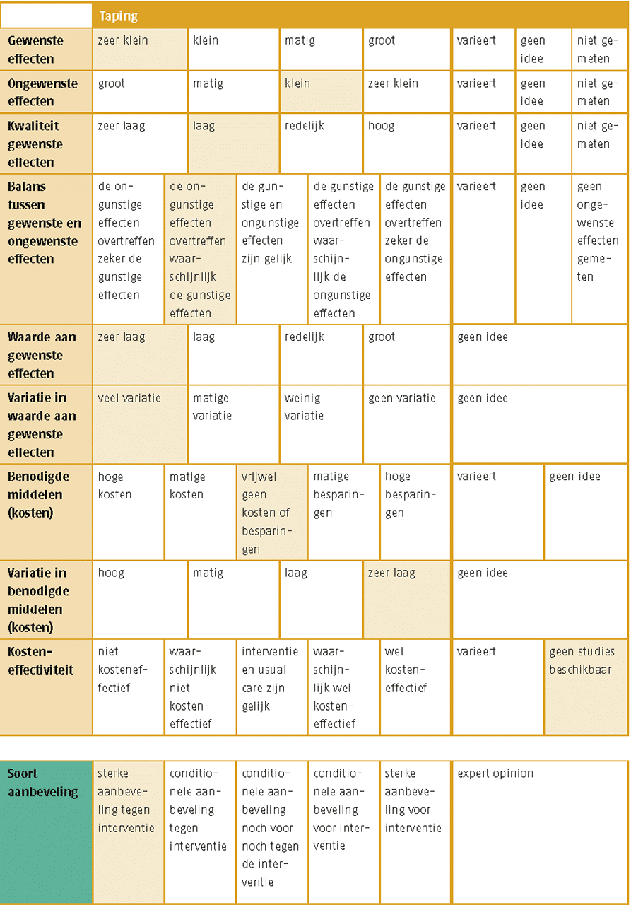 Tabel 31.4. Evidencetabel effectiviteit taping bij heup- en/of knieartrose