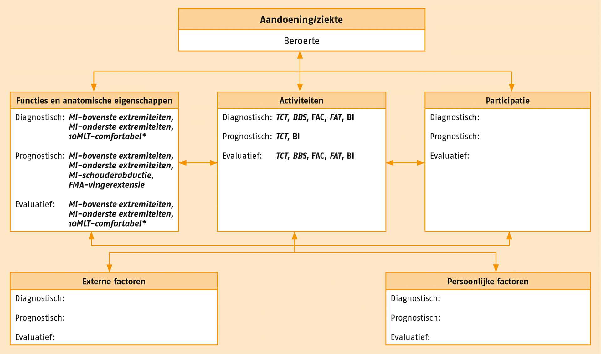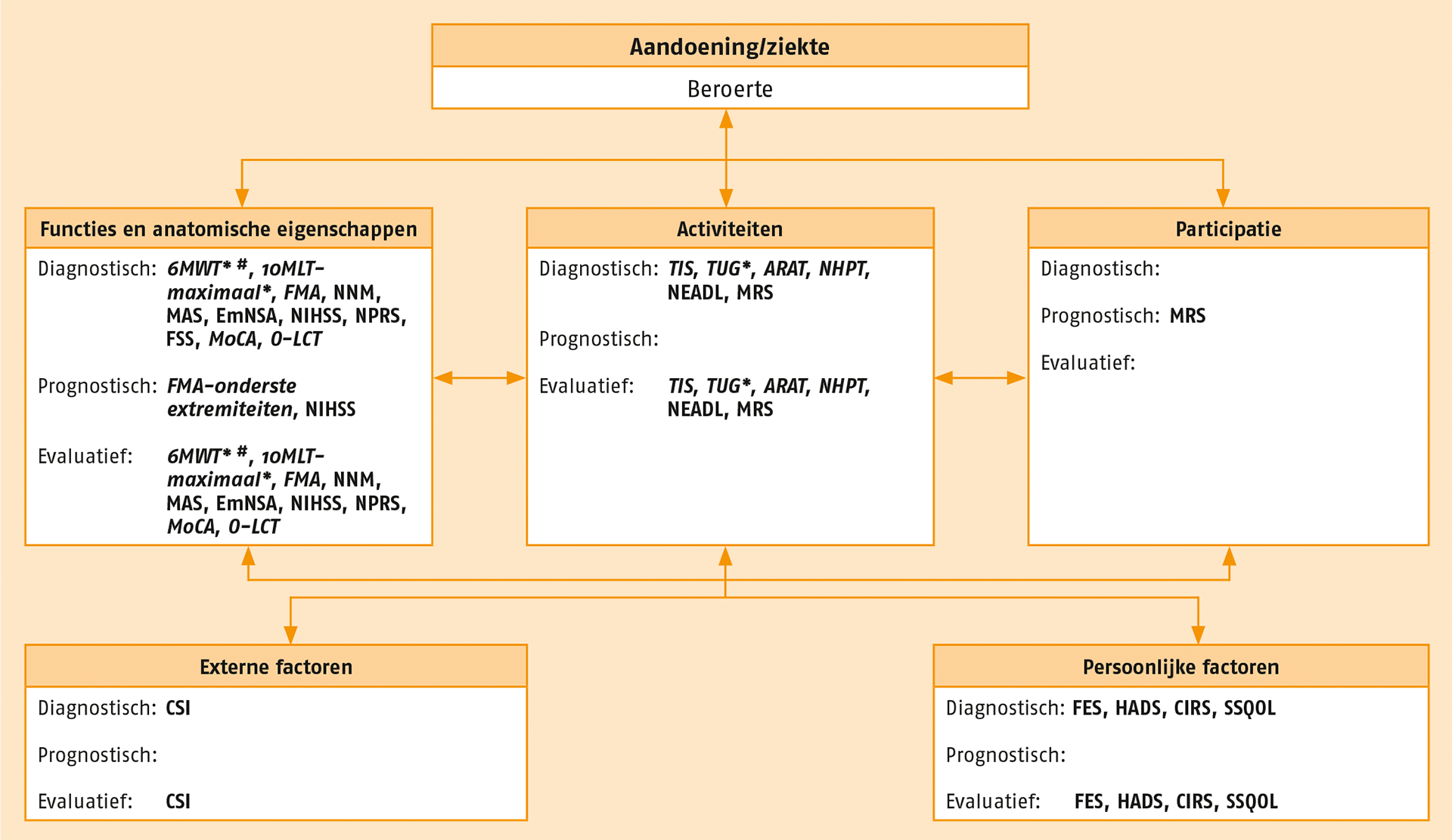 NB Voor het in kaart brengen van participatie, externe en persoonlijke factoren zijn in deze richtlijn geen aanbevolen meetinstrumenten beschreven.