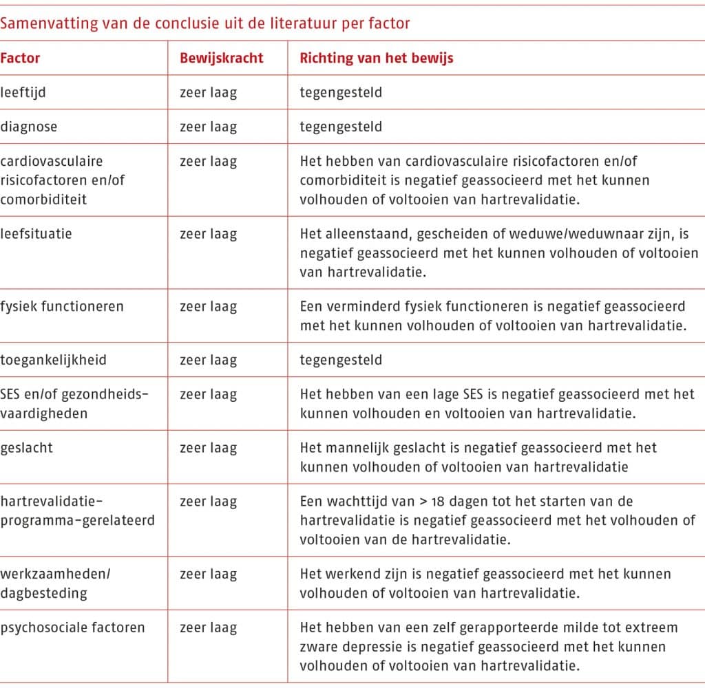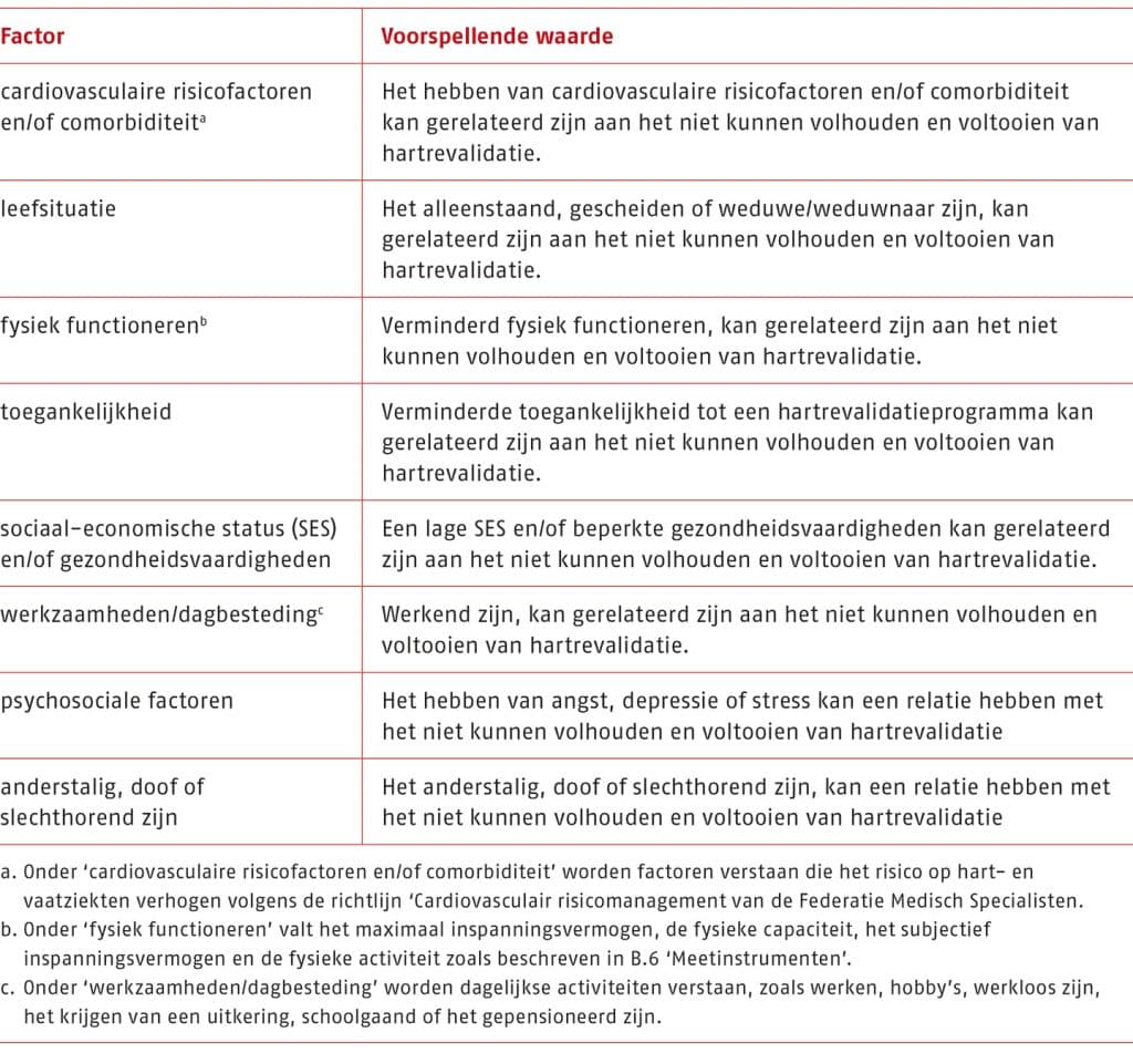 Het aantal patiënten met coronairlijden of chronisch hartfalen dat start met fase II-hartrevalidatie is suboptimaal (Conijn 2022; van Engen-Verheul 2013), evenals het aantal patiënten dat de hartrevalidatie volhoudt en voltooit. Van de aangemelde patiënten voltooit, in specifieke subpopulaties, 80% de hartrevalidatie (Sunamura 2017; Vonk 2021). Een belangrijke oplossing bij het starten, volhouden en voltooien van fase II-hartrevalidatie wordt gezien in het aanbieden van persoonsgerichte zorg (zie C.2 ‘Volhouden en voltooien van de hartrevalidatie’) (Gevaert 2020).