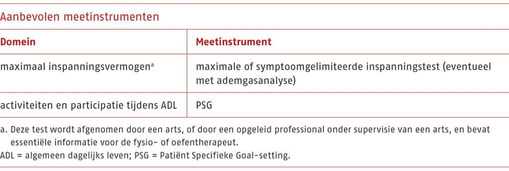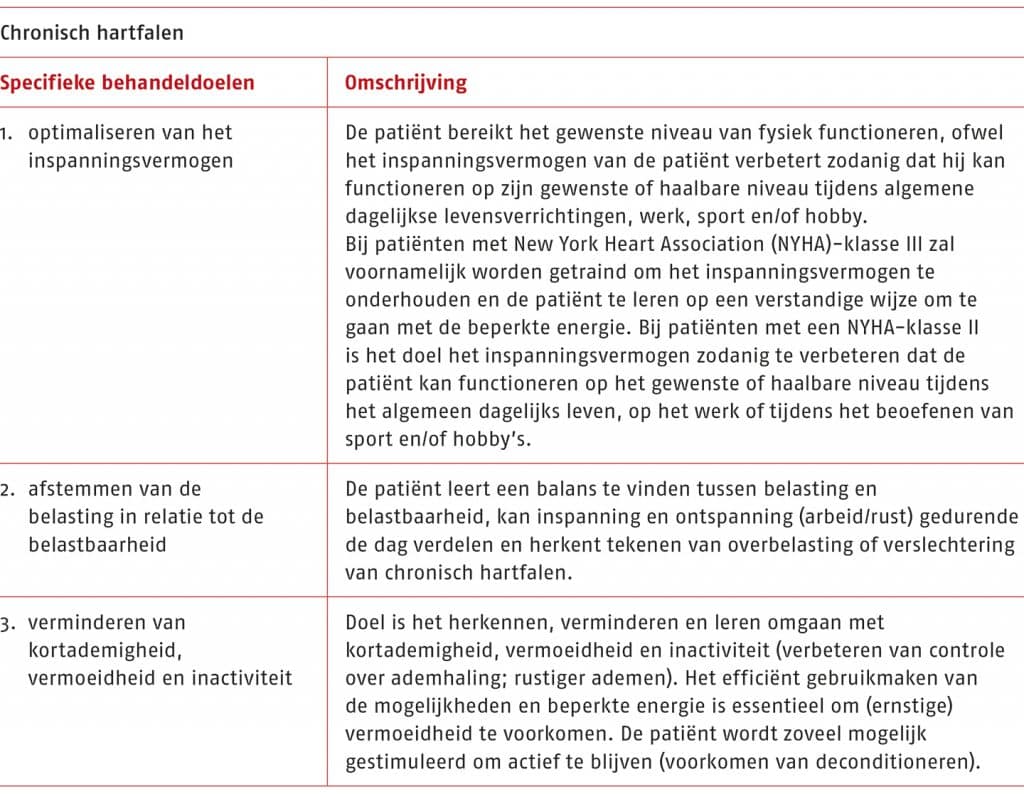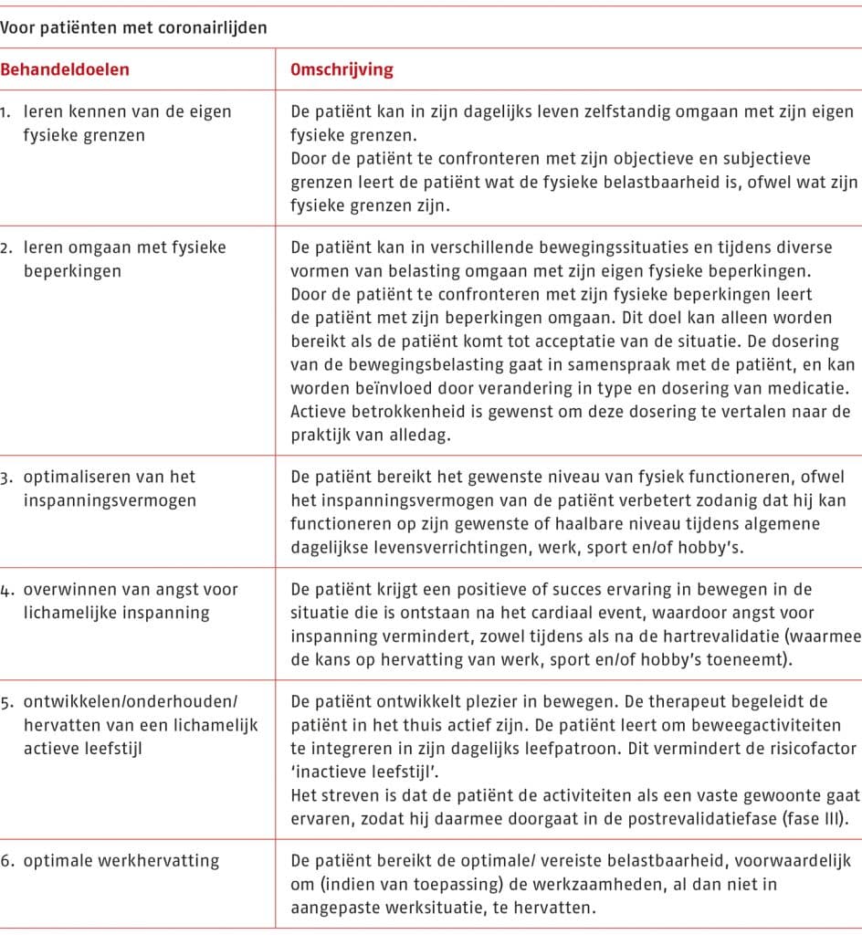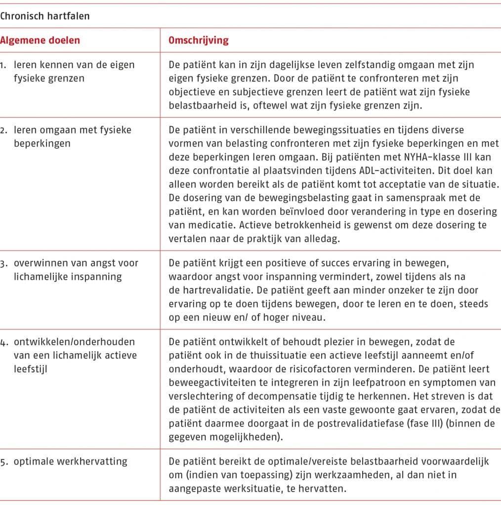 - de hartrevalidatiedoelen die door het multidisciplinaire revalidatieteam samen met de patiënt zijn gekozen (zie B.5 ‘Lichamelijk onderzoek en behandelplan’).