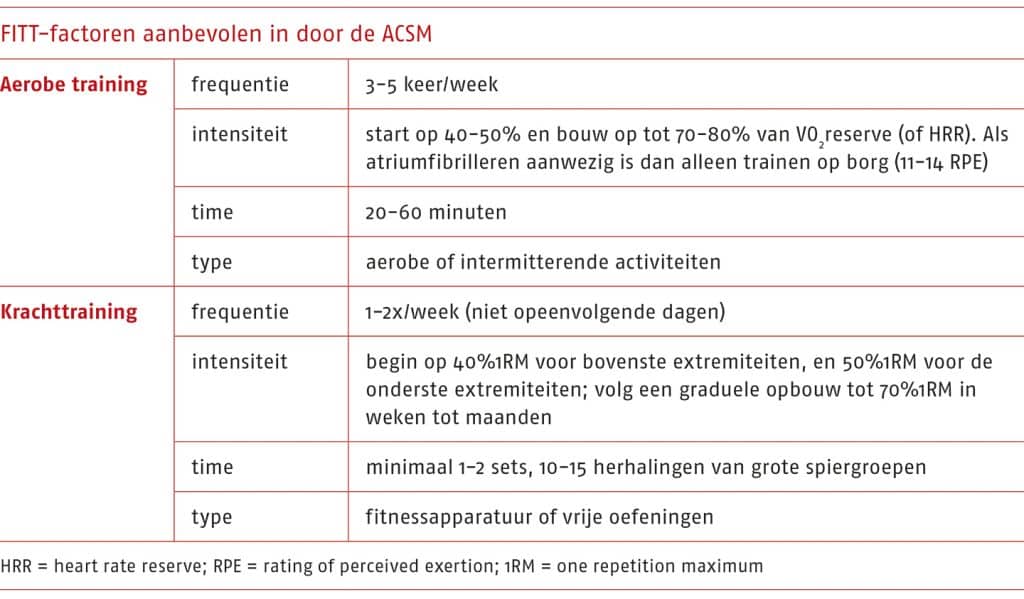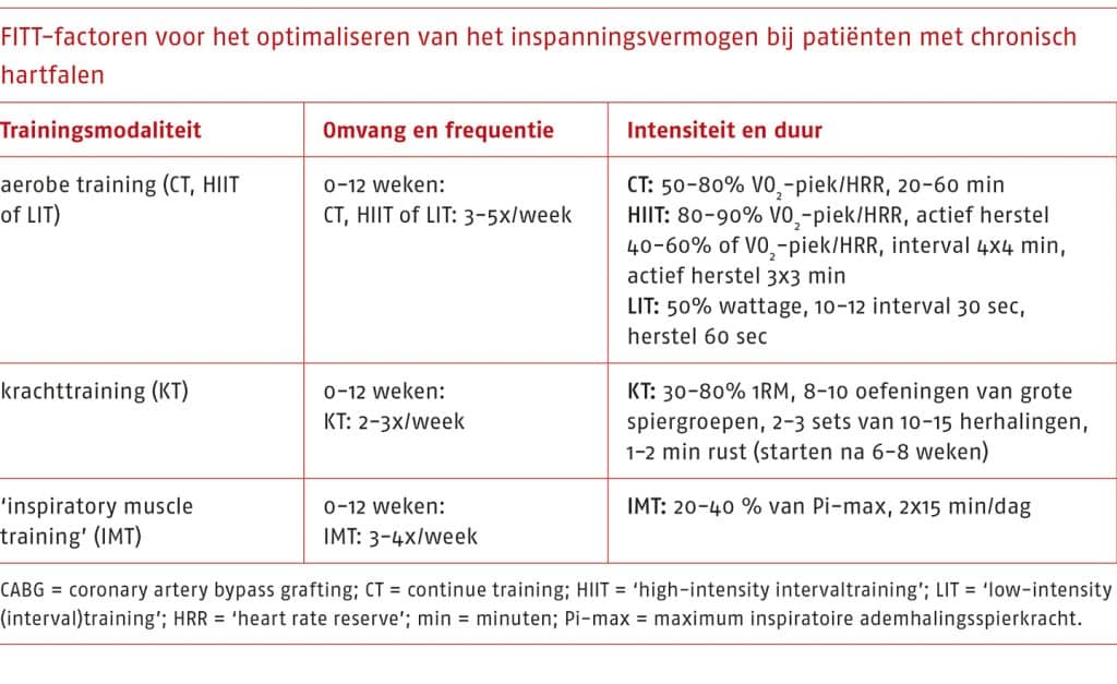 - FITT-factoren bij chronisch hartfalen (zie C.5) (opent in nieuw tabblad);