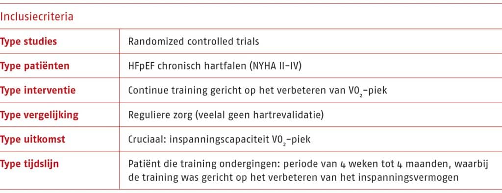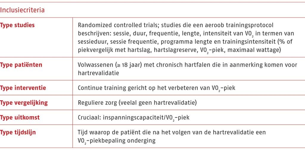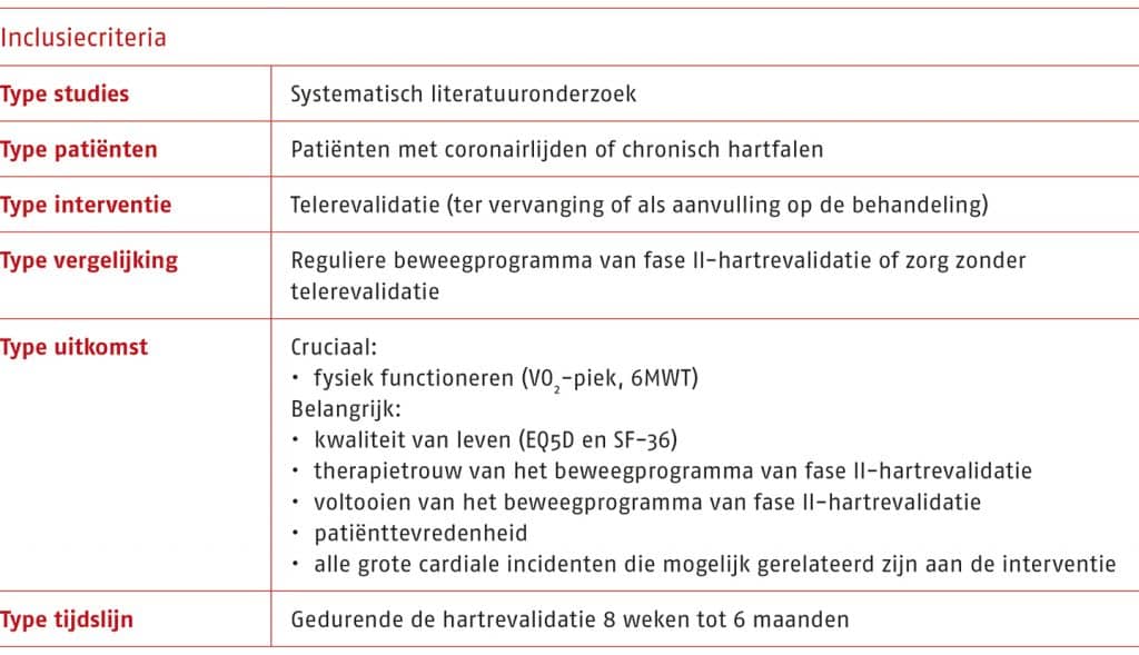 In dit systematisch literatuuronderzoek zijn de volgende inclusiecriteria beschreven voor het beantwoorden van uitgangsvraag 1.
