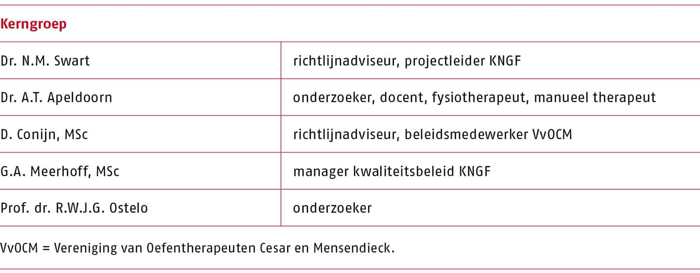De KNGF-richtlijn Lage rugpijn en lumbosacraal radiculair syndroom is een leidraad voor de fysiotherapeut bij de behandeling van patiënten met lage rugpijn en/of (pijn)klachten passend bij een lumbosacraal radiculair syndroom.