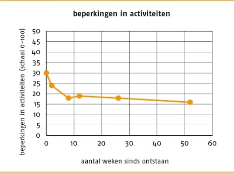 Natuurlijk beloop van nekpijn en beperkingen in activiteiten. Bron: Hush et al.39