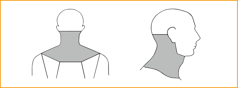 De KNGF-richtlijn Nekpijn dient gevolgd te worden bij patiënten bij wie nekpijn de primaire klacht is. Nekpijn is gedefinieerd als ‘een onaangename sensorische en emotionele ervaring die geassocieerd wordt met daadwerkelijke of potentiële weefselschade’ in de nekregio (van de linea nuchae superior tot aan de spina scapulae), met eventueel bijkomende hoofd-, schouder en/of armpijn. De exacte regio is weergegeven in de volgende figuur.